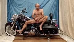 Este velho vai gostar de se masturbar com grande prazer sentado em sua nova moto. Ele quer que a gente veja ele nu com as mãos entre as pernas.