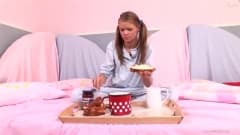 Uma jovem loira toma o café da manhã quando o namorado chega de viagem. Ele também está esfomeado mas é por uma bocetinha suculenta!