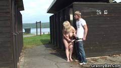 Loira madura excitando este jovem !