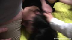 Aqui vamos ver uma linda e gostosa morena chamada Petra, que fará felizes todos esses homens que a fodem ao mesmo tempo como querem.