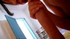 A asiática sexy e fofa gosta do pau do namorado gordinho enquanto grava tudo com a webcam. A tipa faz o homem correr.
