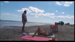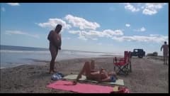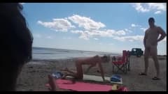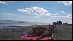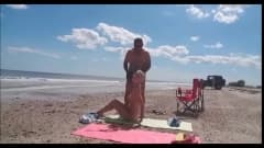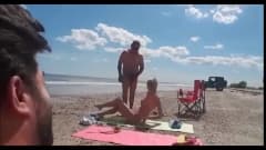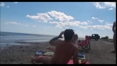 Em uma bela praia americana, essa loira dispara com dois enquanto outra pessoa grava o momento e agora todos podemos aproveitar.