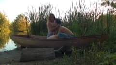 Este jovem casal faz as preliminares no seu barco de madeira com cunilíngua e boquete e fodem deitados na grama. Uma sessão erótica e sensual.