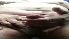 Homem gordo cheio de tesão batendo uma punheta bem gostosa na frente da câmera com gozada no final muito legal
