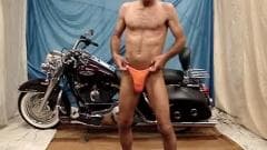 Esse avô gosta de dançar sensualmente na frente da câmera e se despir. Ele acaricia seu pau que não é ruim e por trás dele tem uma harley.