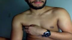 Este moreno de barba, está nu e sentado na frente da câmera, pronto para se masturbar e sentir em seu pênis muito prazer sexual.