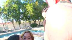 Estar com várias garotas ao mesmo tempo é algo que qualquer homem gostaria de poder fazer. Ele teve sorte de tê-los em uma piscina.