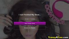 Trans sexy vestindo apenas sua lingerie durante seu show privado na cam e revela seus peitos enormes e pau duro.