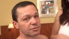 Estar transando com uma moça tão jovem é uma experiência única para esse cara que não vai esquecer essa foda que ele lhe dá no sofá em casa.