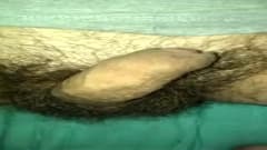 Este homem tem bolas muito peludas e vai buscar prazer se masturbando com a mão como você pode ver nesta cena amadora