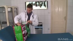 Esse médico está examinando a buceta dela com seu pau, essa linda puta está tomando muito calor desse cara de pau ultra quente