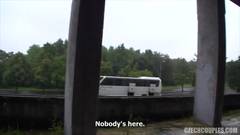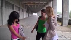 Três mulheres lésbicas se despem, se lambem e depois são pagas por um homem para chupá-las e masturbá-las na rua!