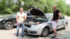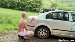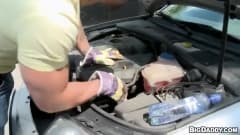 Enquanto eu estava dando uma volta, esse homem viu um amigo que tem o carro avariado, e saiu para ajudá-lo a consertá-lo e depois lhe paga com sexo.