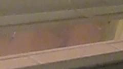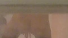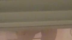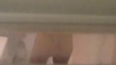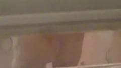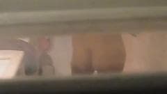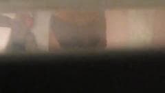 Seus vizinhos encontraram um buraco aberto em sua janela e aproveitam para espionar enquanto troca de roupa e toca a boceta sem que se saiba.
