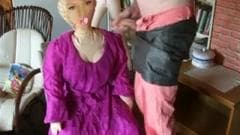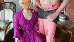 Esse cara ama sua boneca e é por isso que ele não pode esperar para mijar em cima dela antes de mijar em si mesmo e colocar o pau na boca de plástico