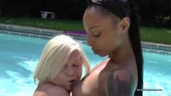 Uma loira madura e uma jovem negra poderão desfrutar de seus corpos na piscina e na cama, pois estão muito quentes.