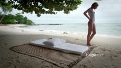 Ela é convidada para uma bela sessão de massagem na praia. O cenário é paradisíaco e o corpo da garota é lindo de mais.