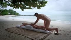 Massagem tântrica numa praia paradisíaca com loira fantástica