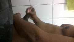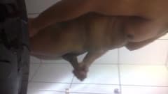 Esse cara latino tem um bom pau que ele gosta de tocar enquanto toma seu banho matinal. Hoje ele faz isso até correr na frente da câmera.