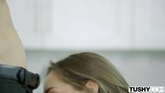 Cassidy Klein faz com que seu pau duro desapareça em sua garganta antes de foder seu cuzinho apertado.
