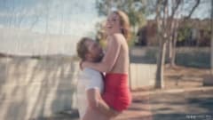 Uma bela loira, ela tem mamas grandes e adora ser fodida. Elas começam a foder ao ar livre e lentamente vão subindo para o quarto.
