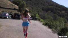 Essa gata morena sexy está fora para sua corrida matinal quando ela foi pegada por um estranho que a convence a passarem um bom momento transando.