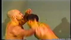Esses dois amigos se divertem muito em uma luta livre enquanto estão nus. O perdedor deve chupar o pau do vencedor. Eles terão um tempo incrível