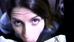 Essa morena gosta muito de chupar pau e não resiste a mamá-lo no parque de estacionamento. O cara vai adorar gozar tudinho na cara da safada!