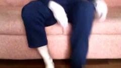 Esse cara usa um fio preto sexy de suas roupas que ele mostra na frente da câmera antes de tirá-la para se masturbar gostoso.