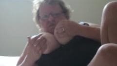 Esta velha tem uma buceta peluda que quer transar com seu vibrador. Como ela é uma vergonha, ela enfrenta a câmera e a grava com ela.