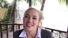 Uma garota linda e jovem vai primeiro ser tocada na bucetinha e depois faz uma magnífica felação num pau enorme que também vai encher toda a sua xoxota!
