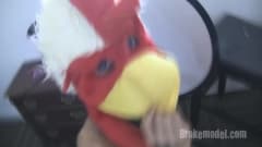 Ela está vestida como uma galinha enquanto está sendo fodida