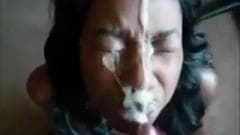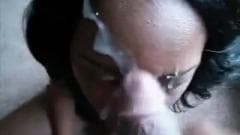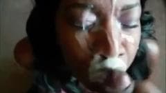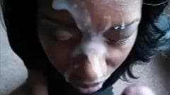 Neguinha safada adora sentir a gozada quentinha cobrindo sua cara e escorrendo na boca dela. Safada deixa ele gravar esses momentos para nós.