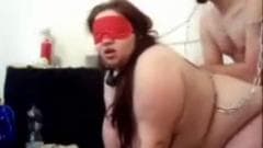 O cara amarrou a gorda e faz ela chupar seu pau antes de a montar bem fundo por trás. Ele ainda excita buceta da safada com um dildo e a fode de novo.