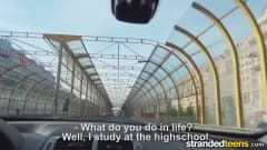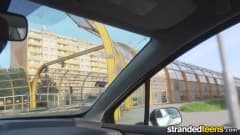 Uma jovem morena está esperando seu ônibus e pega carona com um rapaz que vai conseguir que ela dê uma chupada e fique de 4 dentro para comer sua xoxota!