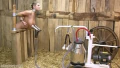 Essa mulher se diverte muito e se emociona com seus peitos enormes, e um homem acaba colocando-a em uma máquina para ordenhá-la como uma vaca. Que cena!