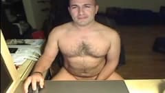 Esse cara peludo só quer gozar, então ele masturba seu caralho duro e goza muito para cima da mesa e grava tudinho para você