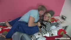 Essa loira bonita não esperava desfrutar de uma boa foda desse cara que faz com que ela fique meladinha e a faça sentir muito prazer.