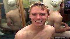 Pee Wee se diverte muito com Corey e Tyler nesta sessão conjunta de masturbação na frente de um espelho. Não perca esses twinks brincalhões.