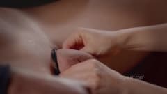 É uma cena interessante e estimulante em que uma puta dominante num arnês se apodera e masturba o grande pinto de um cara, que acaba por gozar
