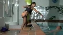 Esse homem maduro vai ter direito a uma pequena reunião de dominação com uma sublime morena de lingerie.