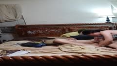 Esse cara está deitado com seu pinto esperando e aproveitando o trabalho que esta morena está fazendo por ele, nada mal, por sinal!