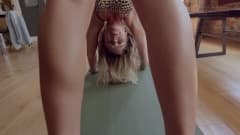 A deslumbrante loira Lena Nicole acariciando seu corpo incrível e muito excitada depois da ioga. Ela está muito relaxada esfregando sua buceta!