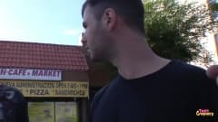 O ator original não conseguia ficar com o pau duro, então escolheram um cara da rua para substituí-lo, e ele aceita quando vê os peitos grandes dela.