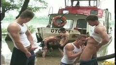 Um barco está preso perto da praia e os oficiais bonitos e musculosos a bordo aproveitam uma intensa sessão de sexo oral e anal.