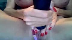 Ela tem um novo brinquedo erótico com o qual ela pode se ajudar a se masturbar e, especialmente, para excitar seu clitóris que tem um anel.