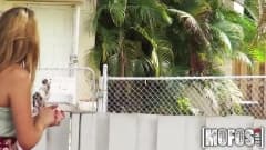 Uma mulher loira e uma morena vão brigar e acabam de lingerie na lama. A loira vai tomar um banho sozinha, dar um bom boquete e uma foda para relaxar!