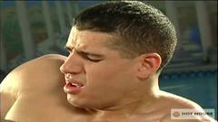 Nick Piston e Tony Mecelli são dois homens fortes e atraentes que fazem sexo brutal à beira da piscina.