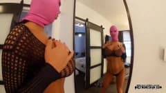 Essa grande prostituta está usando uma máscara para deixar seu homem ainda mais excitado ao fodê-lo e encher seu rosto de esperma.