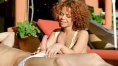 Esta ruiva adora sexo ao ar livre e especialmente se tiver um pênis como este para chupar antes de ser bem pegada pela bunda!